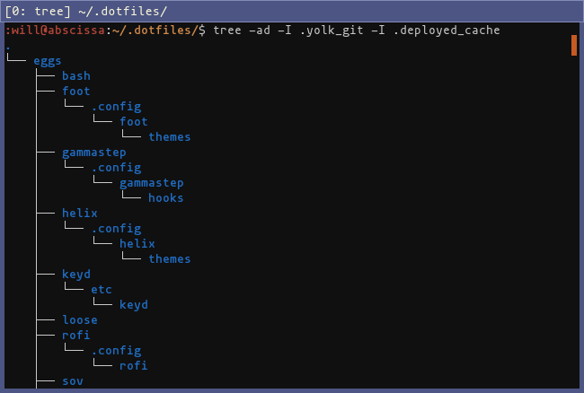 Apart from the yolk documentation itself, I couldn’t find many resources about how to use it. I also haven’t seen it mentioned in many online discussions or lists of similar tools. This is a quickstart guide for replicating my yolk setup and getting started with configuration templating. If you’re interested, you can read about how I previously managed configuration files with Stow. Otherwise, skip straight to seeing how I use yolk.