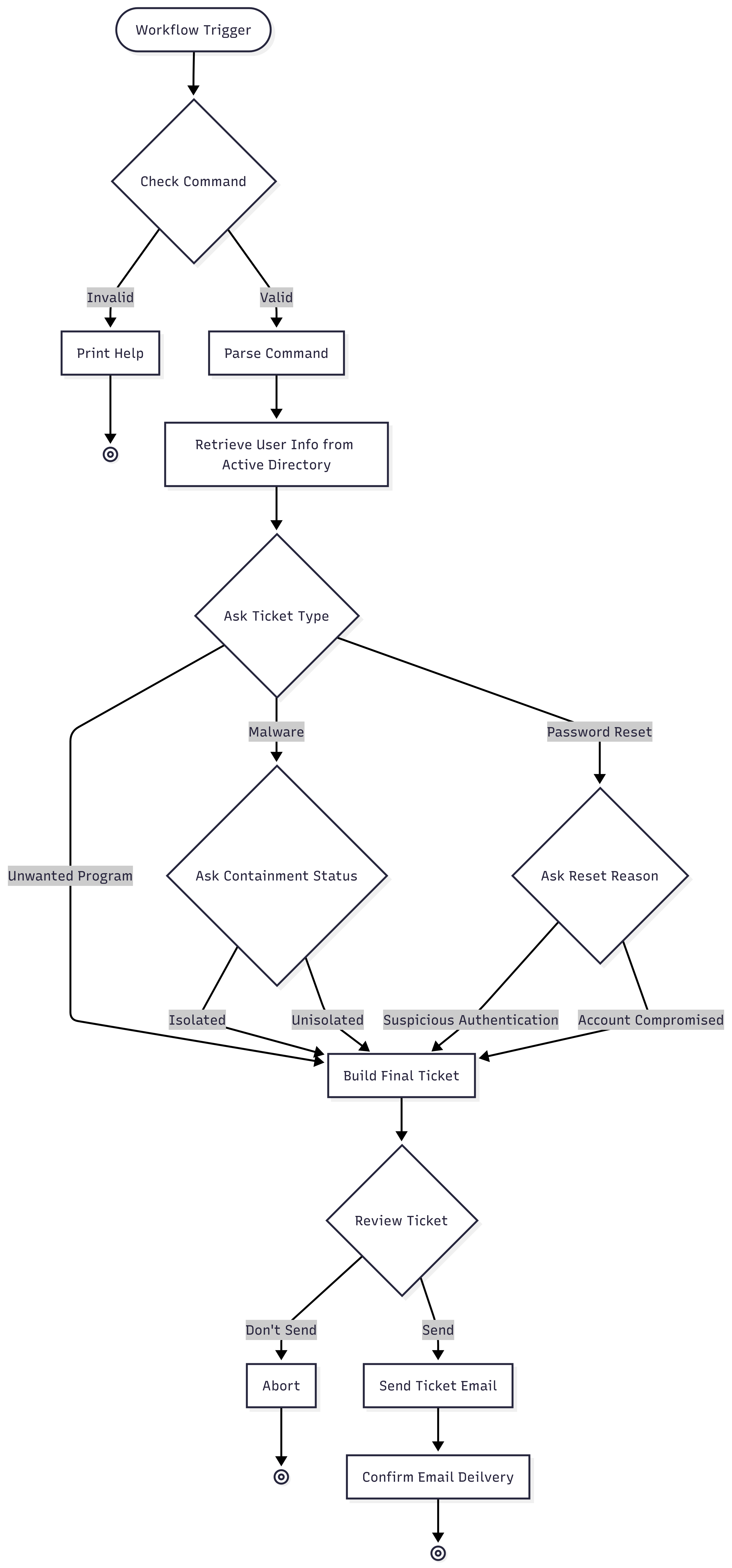 - Because it is possible to get the email address of the analyst that sends the command in Slack, we could have an option to send a copy of the final ticket email message to the user’s inbox for additional confirmation that the ticket was submitted.